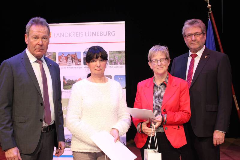 Während der Feier wurden Hanna Firch und Susanne Wendlandt die Urkunden vom Landkreis Lüneburg von Pastor Tegler und Andrea Barckhan überreicht, da Hanna Firch bei der Verleihung am "Tag der Ehrenamtlichen des Landkreises Lüneburg" nicht dabei sein konnte, weil sie sich gerade mit dem Weihnachtstransport in Masuren befand.