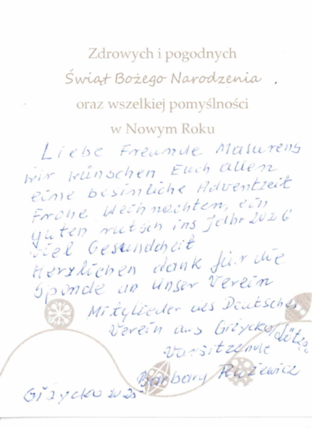 Weihnachtsgrüße für den Verein „Freunde Masurens“