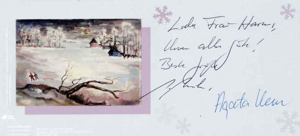 Wir bedanken uns sehr herzlich bei den Deutschen Minderheiten in Mrągowo/ Sensburg und Giżycko/ Lötzen sowie beim Ostpreußischen Landesmuseum in Lüneburg für die liebevollen Weihnachtsgrüße.